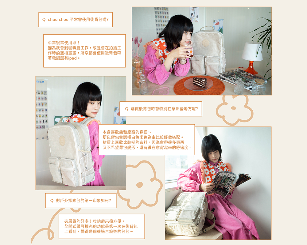 本篇請到chou chou來分享平常會喜歡什麼樣的後背包