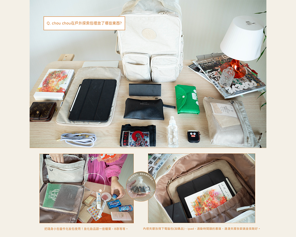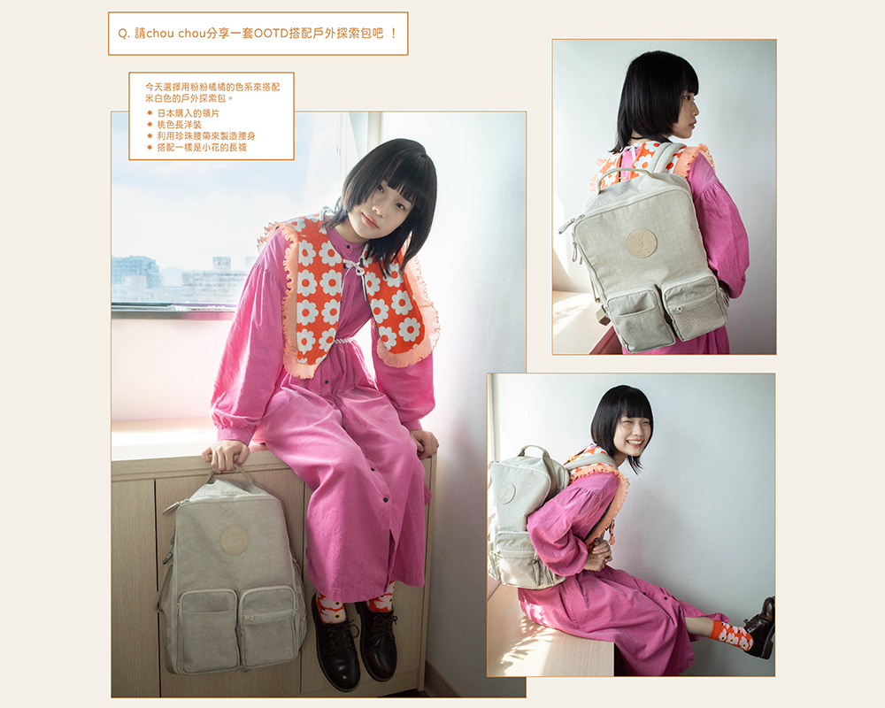 chou chou分享了一套OOTD來搭配米白色的戶外探索包
