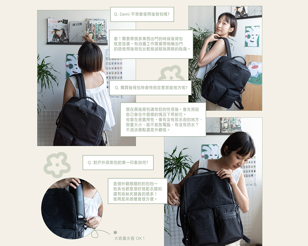 她也試背了附贈的隨身小包,想知道完整訪談內容就繼續看下去吧!